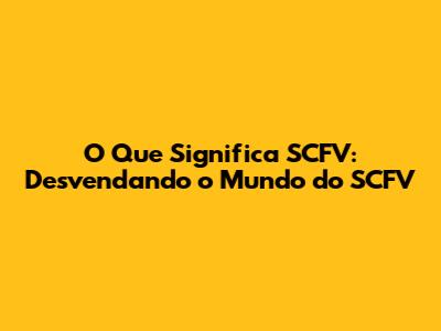 O Que Significa SCFV: Um Guia Completo