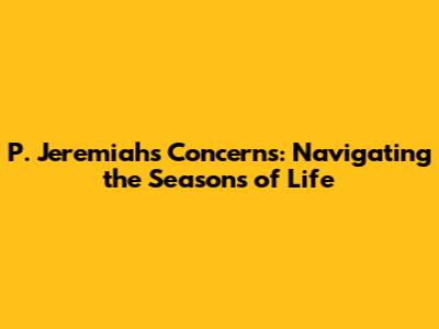P. Jeremiah's Concerns: Navigating The Seasons Of Life